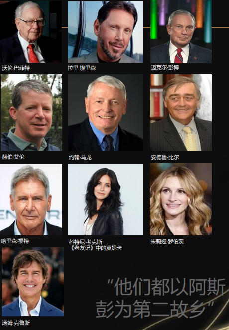 除了滑雪胜地,阿斯彭还以“富人和社会名流的第二故乡”闻名,许多名人在该地区拥有房产。