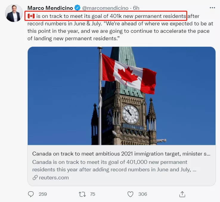 不过,随着加拿大疫苗接种率越来越高,防疫措施逐步放宽,加拿大在近期迎来了新一轮的移民高峰。