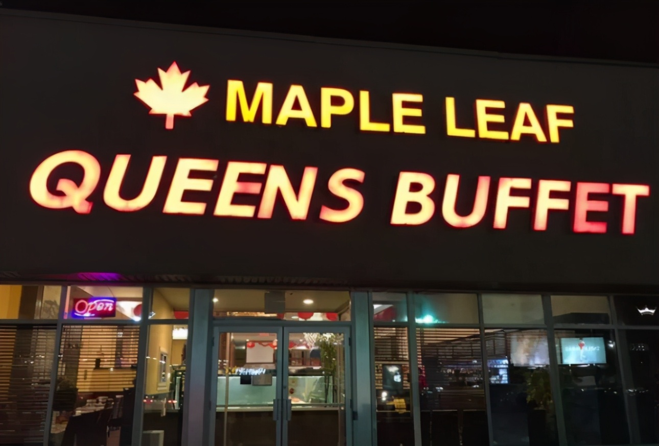 在餐厅外仰头看着大大的门楣"Maple Leaf Queen's Buffer",打开餐厅大门,等待服务生安排就座,不禁打量起整个餐厅,估计可以容纳四百人就餐的大厅,用一人高的半隔墙分为两大区域,餐厅另外设置了VIP室供举办各种聚会使用。