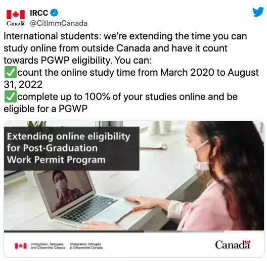 加拿大已将国际学生的在线学习期限从2021年12月31日延长至2022年8月31日。该措施最初于2020年实施,作为与covid-19病毒相关的措施的一部分,其目的是让受大流行影响的国际学生仍然有资格获得 PGWP。
