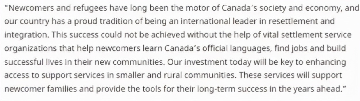 加拿大联邦移民部(IRCC)1月17日最新消息,为确保在小城镇和农村社区定居的新移民在来到加拿大第一年能够获得基本服务,加拿大移民部部长肖恩·弗雷泽(Sean Fraser)宣布将在加拿大全境投资超过3500万加元来增加安置服务。