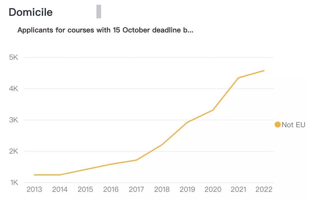 近年来,英国大学申请热度一路走高,据UCAS(英国接受学生高等教育入学申请的中央机构)官方数据显示,2022年共有77810名学生(去年76940名)通过UCAS系统申请英国大学,其中来自中国大陆的学生有4570名,中国是英国大学最大的国际生源国,在上个年度暴涨31%的基础上,较去年同期又增长了约5%,再创历史新高!