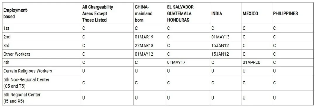 - EB-3 (技术类专业劳工)原地踏步;非技术劳工前进30天;