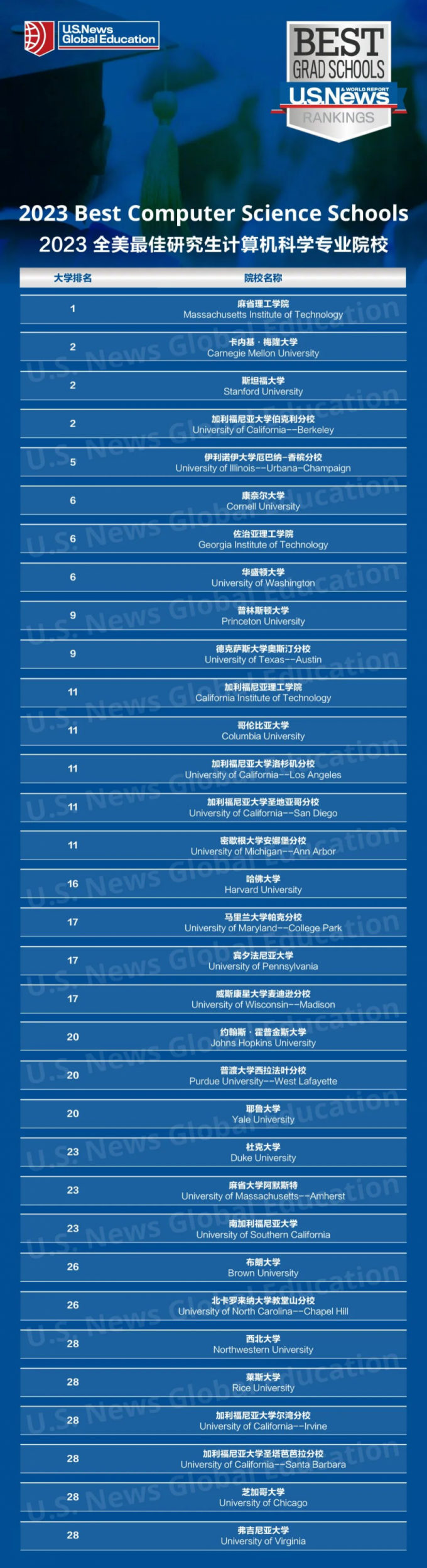 北京时间2022年3月29日,U.S.News 2023年度的全美最佳研究生院排名如期而至!