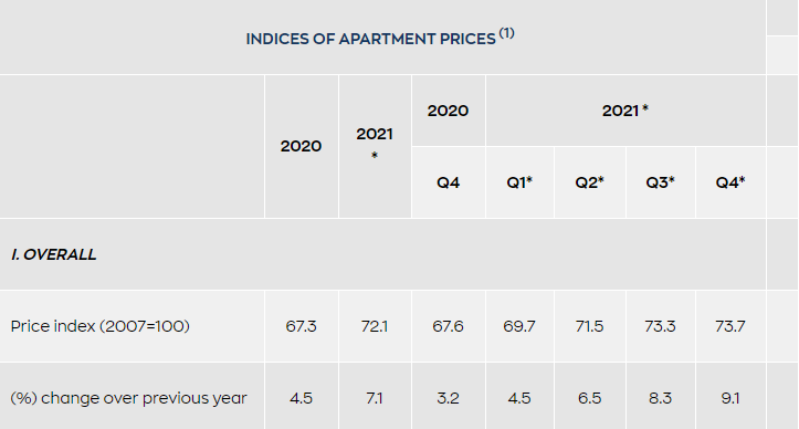 希腊央行3月发布的数据显示,2021年第四季度希腊公寓的价格较2020年同一时期上涨9.1%,2021年希腊公寓价格平均上涨7.1%。其中,2021年第四季度希腊雅典的公寓价格比2020年同期上涨10.5%,2021年全年雅典公寓价格平均上涨9.1%。