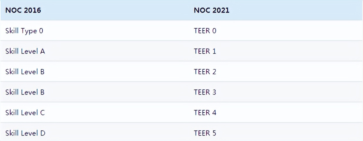 NOC 2021的主要变化是针对NOC 2016等级技能的结构修改,它将更新为六类等级技能系统,新系统概述了进入每个职业所需的培训、教育、经验和责任水平。