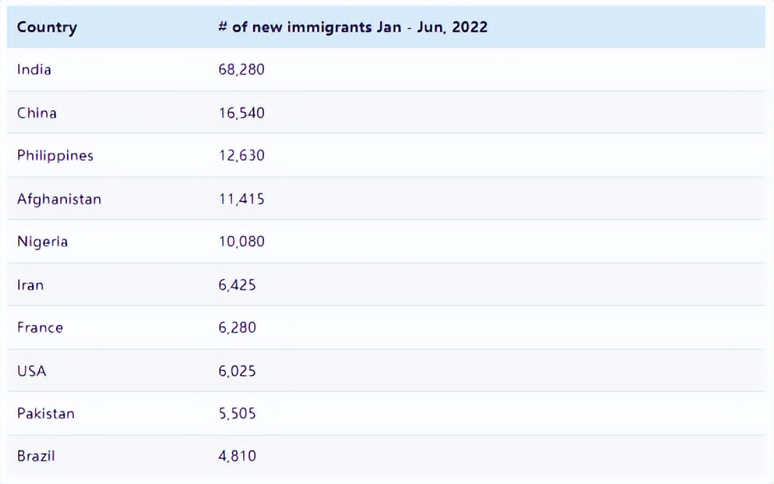 印度仍然是最大的新移民来源国。今年上半年,已有68,280名印度人获得加拿大永久居留权,占所有移民加拿大人数的29%。自2017年以来,印度公民一直是加拿大新移民的最大来源国。